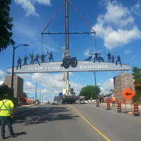 - Lundy's Lane Archway Installation - Aligning the Sign - Far, 07