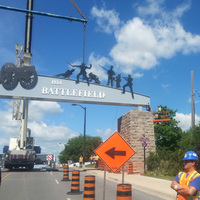 - Lundy's Lane Archway Installation - Aligning the Sign - Far, 08