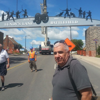 - Lundy's Lane Archway Installation - Journalist Tony Ricciuto in front of Archway