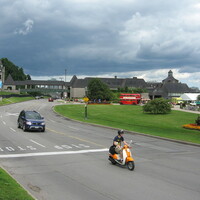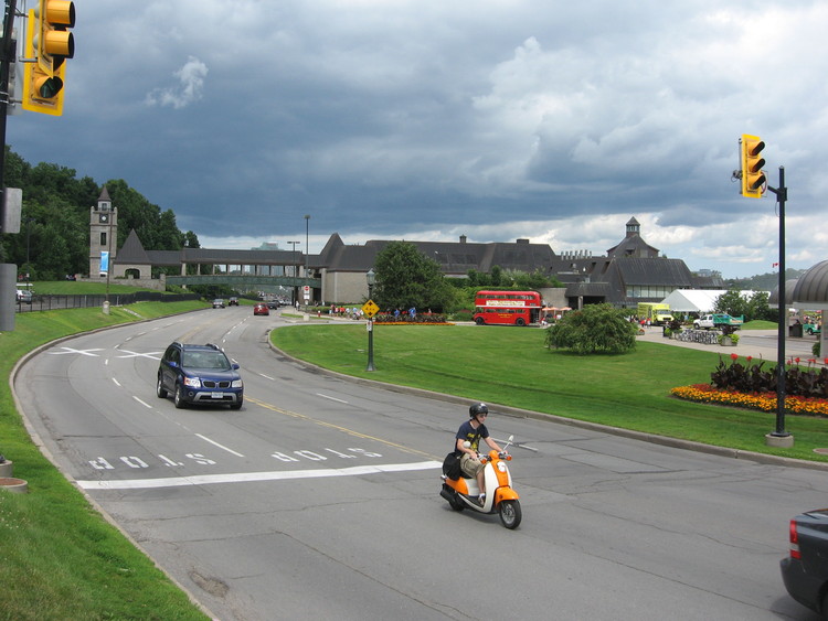 en-CA Traffic on the Niagara Parkway, including a red double decker bus at the Table Rock Welcome Centre.