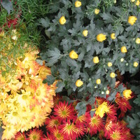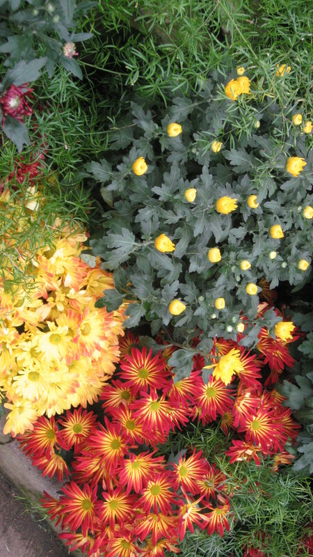 - en-CA Autumn display in one of the interior greenhouses of the floral showcase featuring various mums.