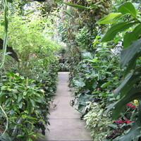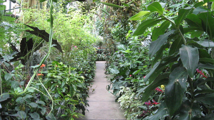 en-CA Flowering plants on display on both sides of pathway in the interior of the Floral Showhouse.