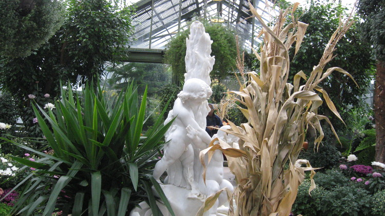 en-CA Flowering plants on display on around the fountain in the interior of the Floral Showhouse.