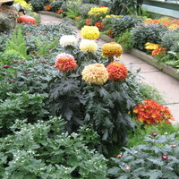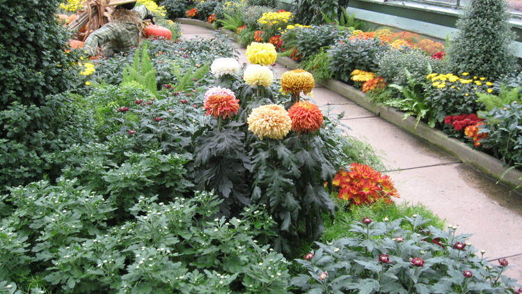 - en-CA Autumn display in one of the interior greenhouses of the floral showhouse.