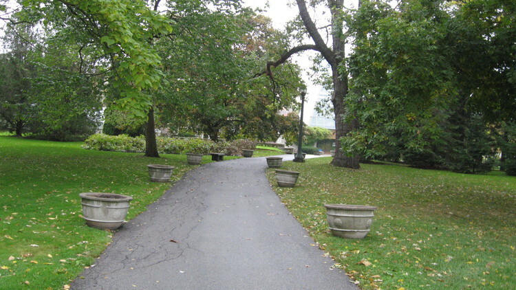 - en-CA Tree lined pathway leading to the Floral Showhouse.