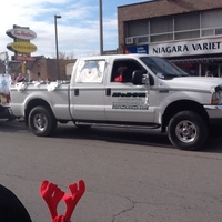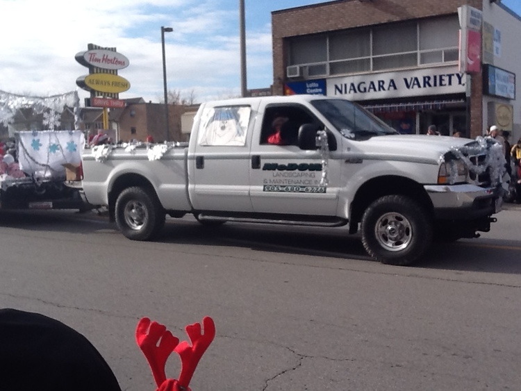 en-CA White pickup truck pulls a float for "a Child's World" in the Santa Claus Parade, taken from in front of the Niagara Falls Public Library on Victoria Ave.