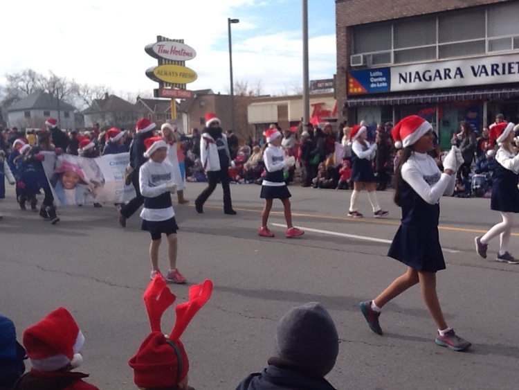 - en-CA School children in the Santa Claus Parade, taken from in front of the Niagara Falls Public Library on Victoria Ave.