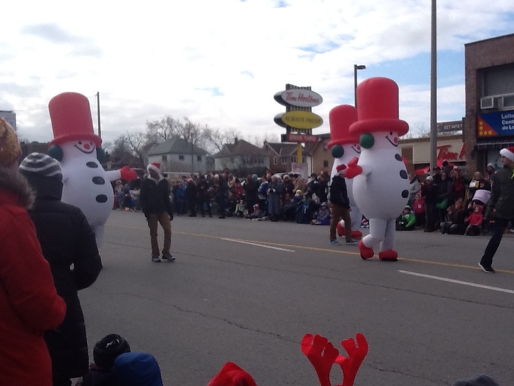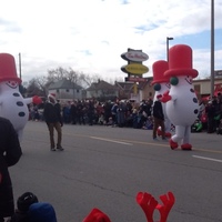 en-CA Giant inflatable snowmen in the Santa Claus Parade, taken from in front of the Niagara Falls Public Library on Victoria Ave.