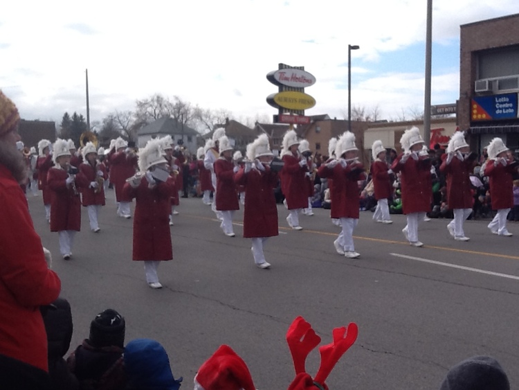 - en-CA Marching band in the Santa Claus Parade, taken from in front of the Niagara Falls Public Library on Victoria Ave.