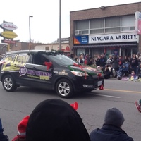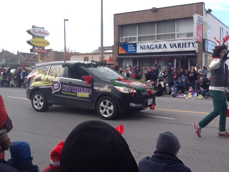 en-CA Car with logo for "2 Day FM Hit Music Now!"in the Santa Claus Parade, taken from in front of the Niagara Falls Public Library on Victoria Ave.