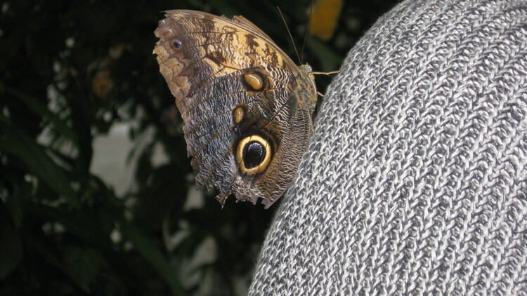 - en-CA Interior view of the Butterfly Conservatory showing a close up of a butterfly.