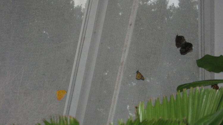 en-CA Interior view of the Butterfly Conservatory showing butterflies on a window screen.
