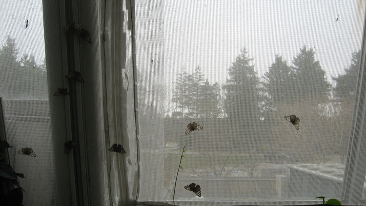 en-CA Interior view of the Butterfly Conservatory showing butterflies on a window screen.