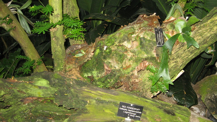 - en-CA Interior view of the Butterfly Conservatory showing a 'red powderpuff' plant.