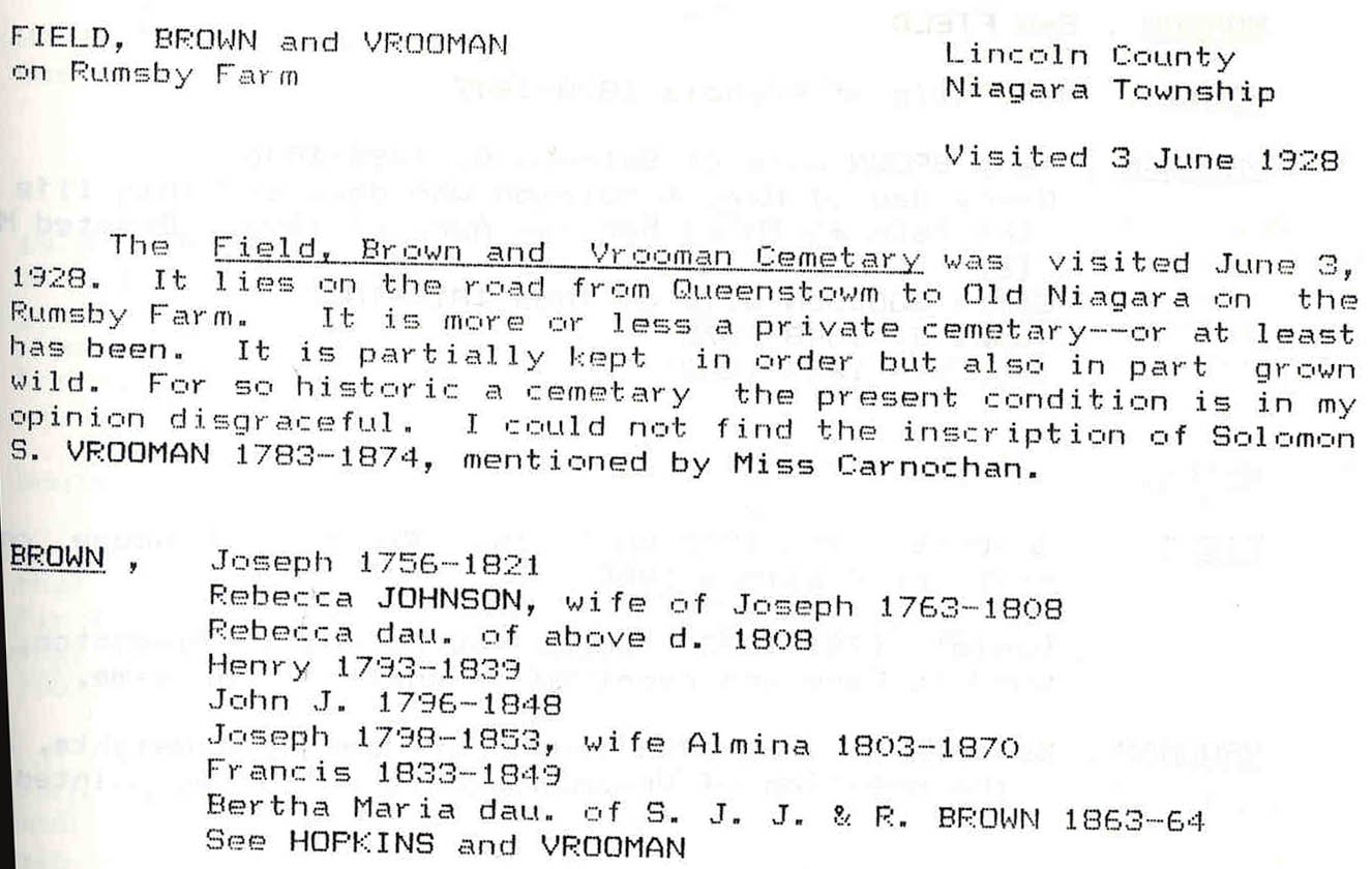 - en-CA Cemetery: Field, Brown & Vrooman; Also on microfilm reel #: 1