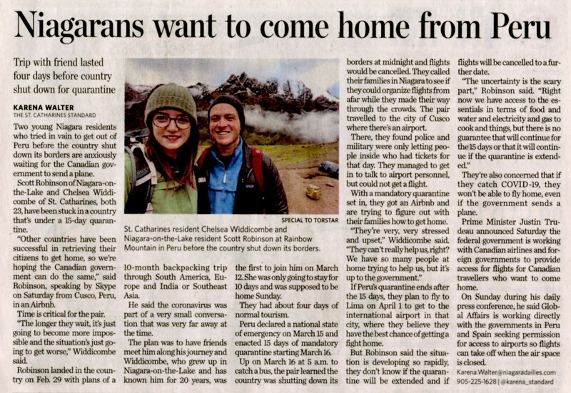 - Niagarans want to come home from Peru : trip with friend lasted four days before country shut down for quarantine