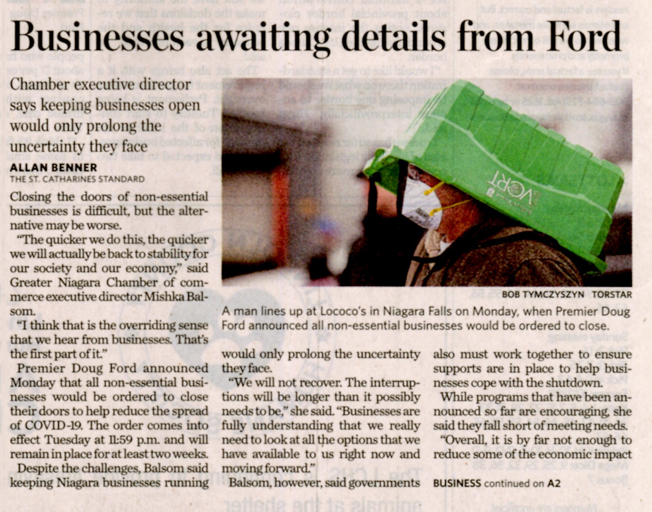 - Businesses awaiting details from Ford : Chamber executive director says keeping businesses open would only prolong the uncertainty they face