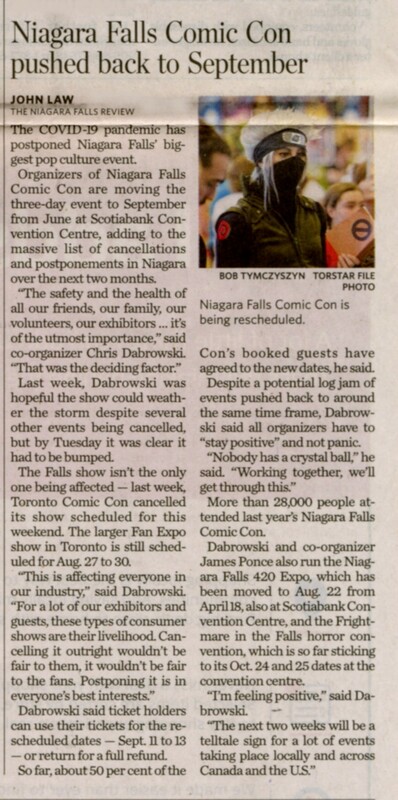 - Niagara Falls Comic Con pushed back to September