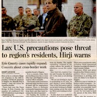 - Lax U.S. precautions pose threat to region's residents, Hirji warns : Erie County cases rapidly expand : concern about cross-border work