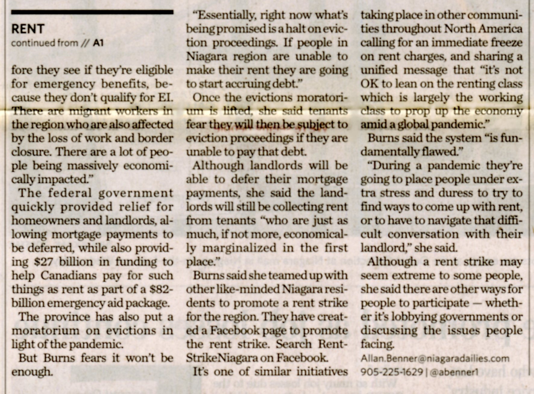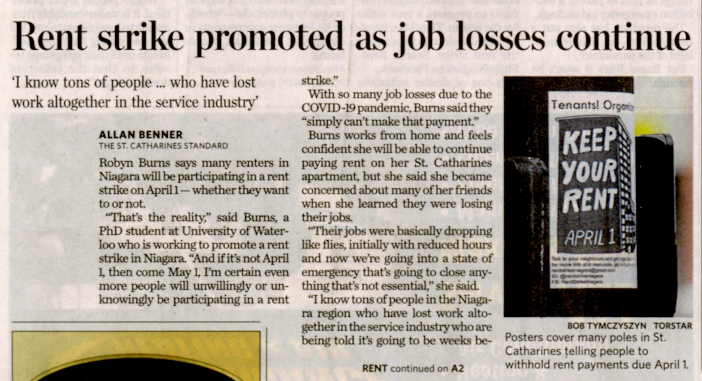 - Rent strike promoted as job losses continue : I know tons of people who have lost work altogether in the service industry