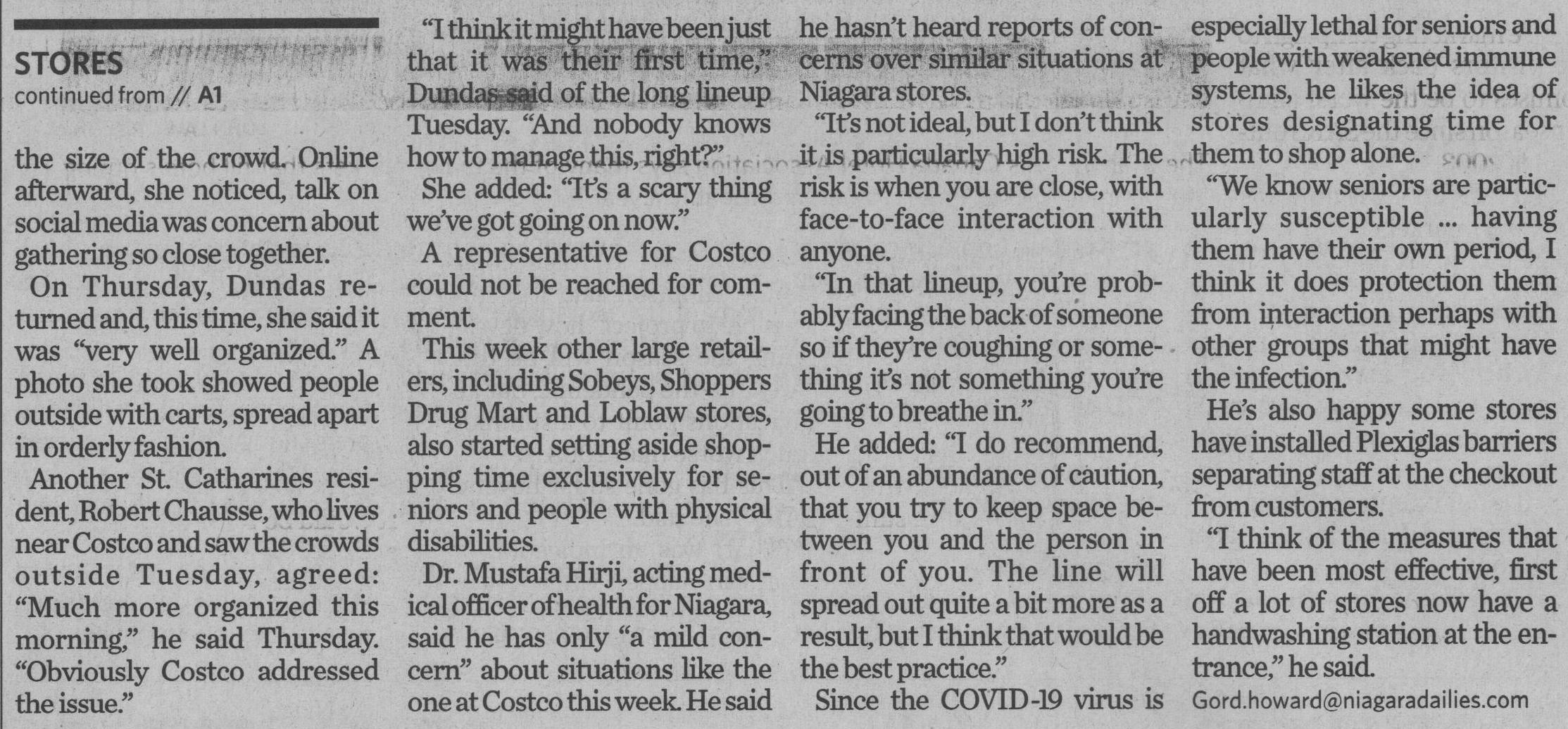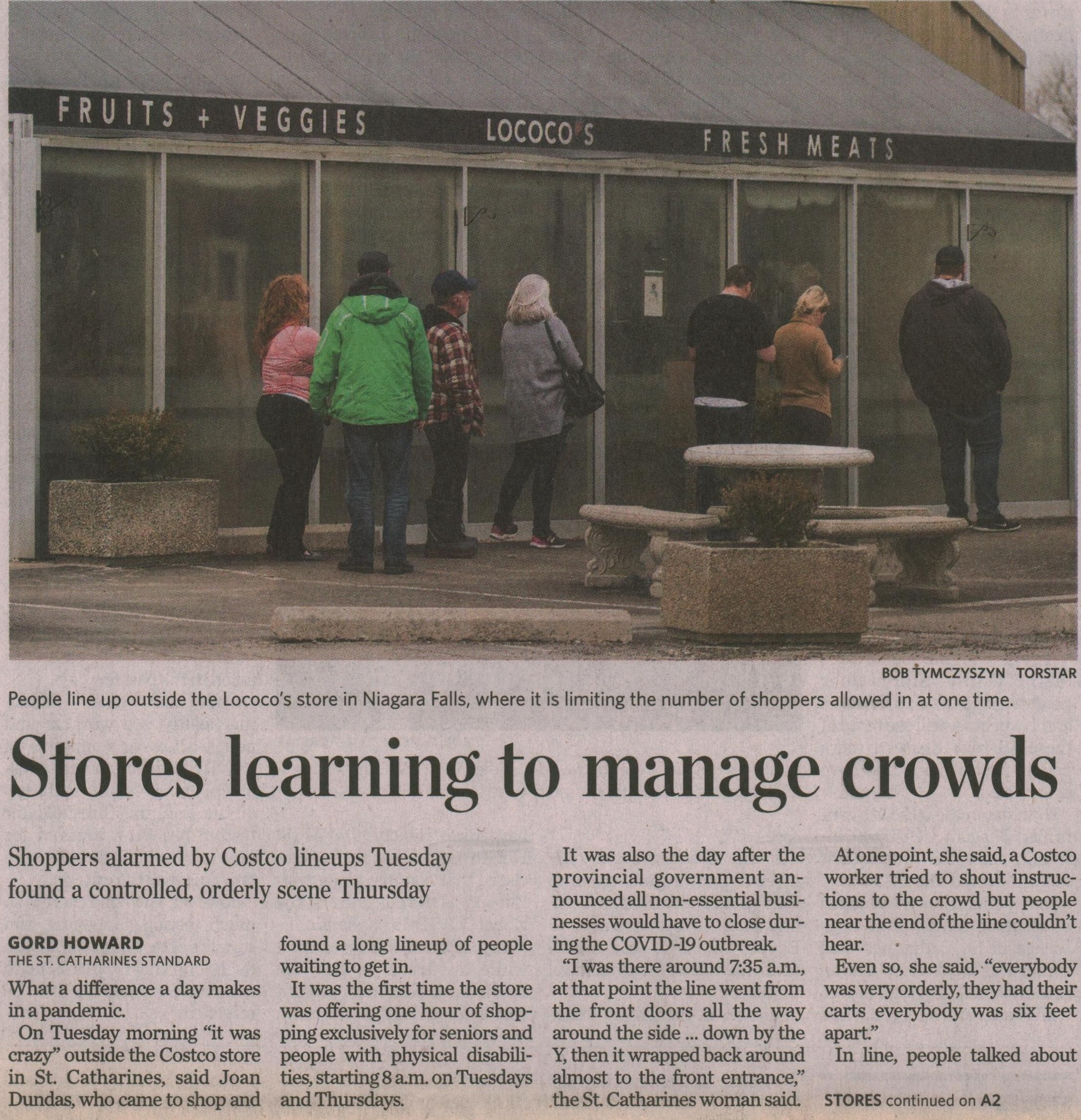 - Stores learning to manage crowds : shoppers alarmed by Costco lineups Tuesday found a controlled, orderly scene Thursday