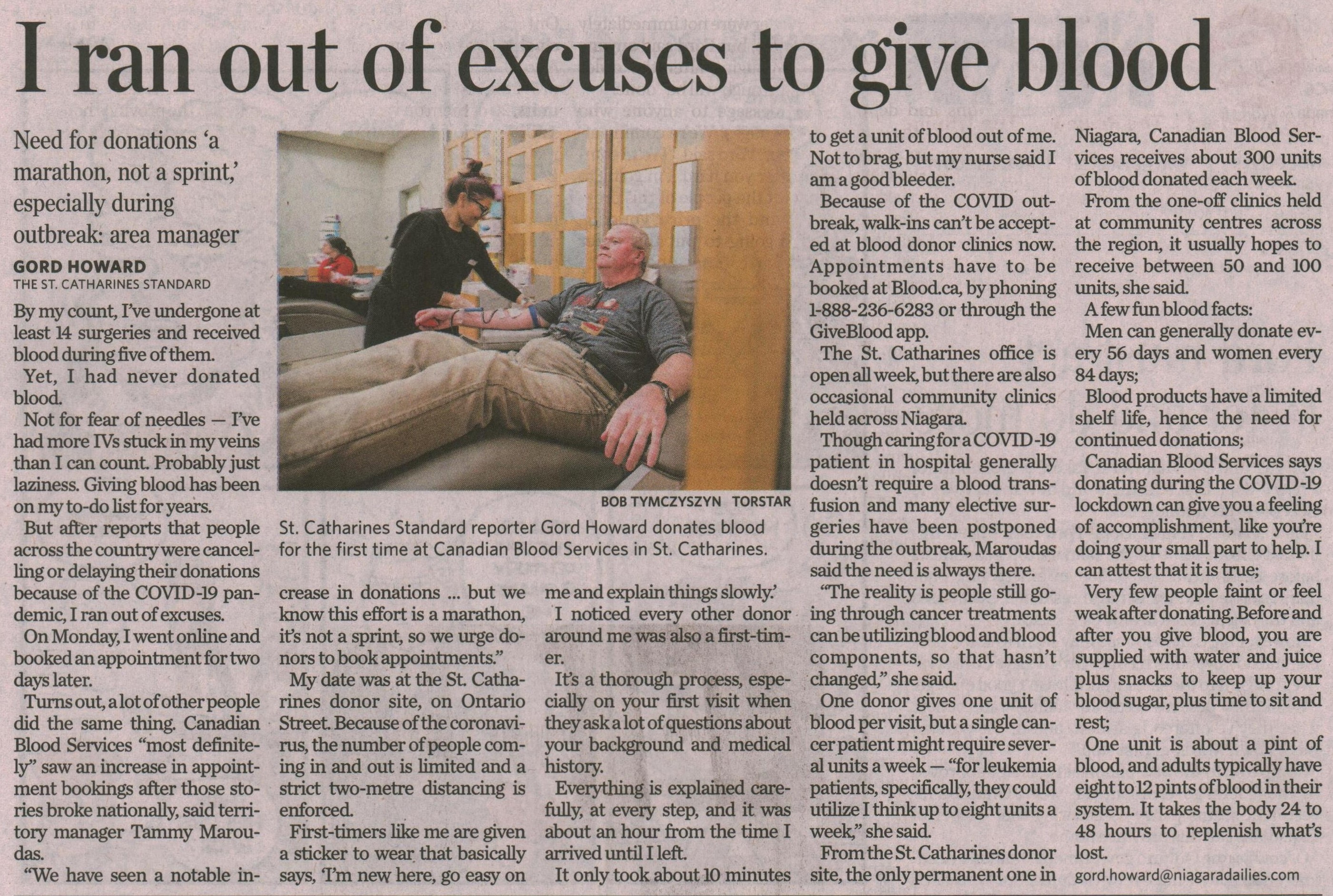 - I ran out of excuses to give blood : need for donations a maraton, not a sprint, especially during outbreak : area manager