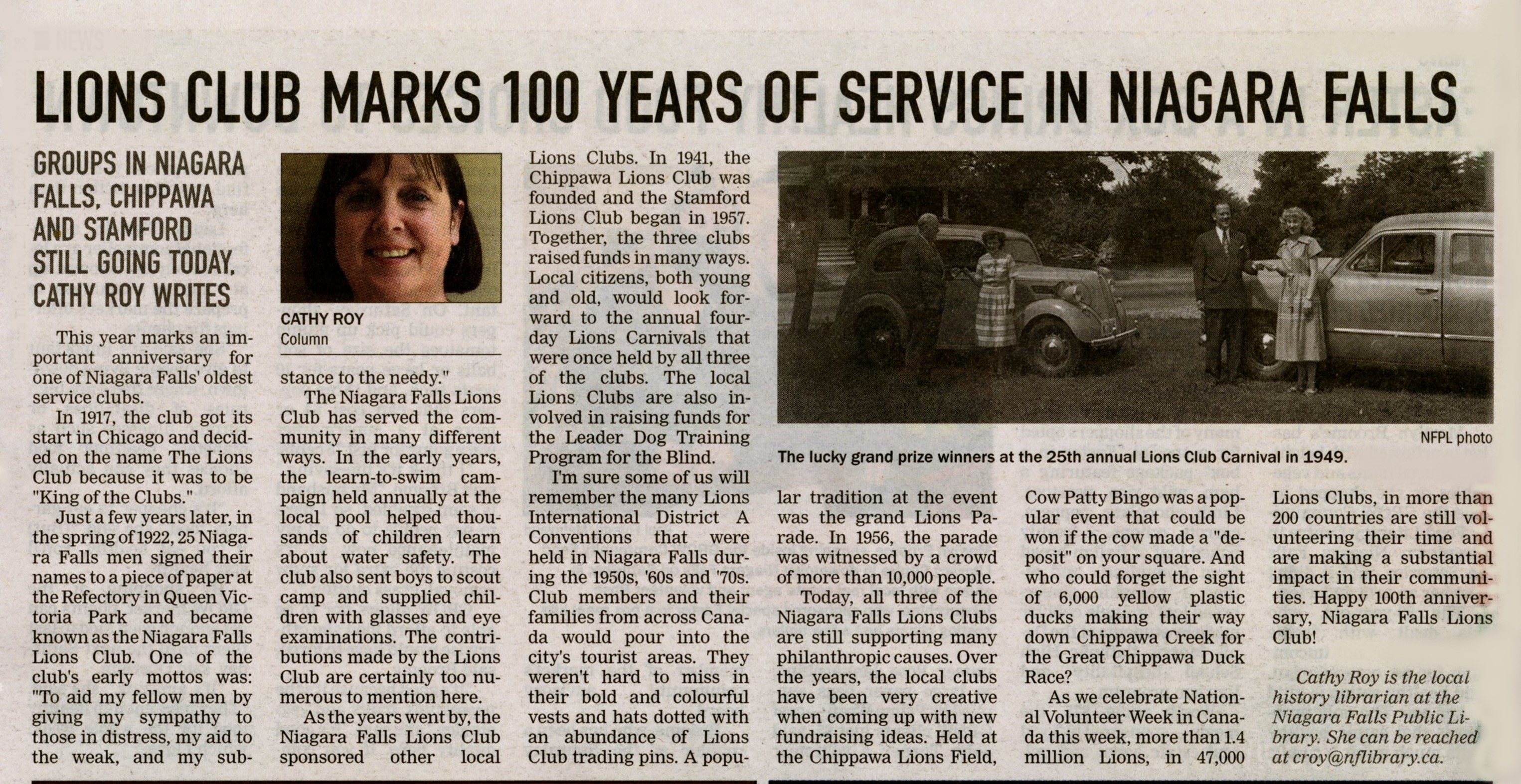 - Lions Club marks 100 years of service in Niagara Falls : Groups in Niagara Falls, Chippawa and Stamford still going today