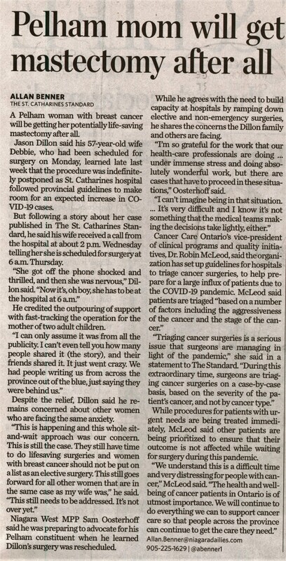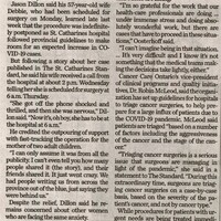 - Dillon, Debbie / Dillon, Jason / Cancer Care Ontario / elective surgery / COVID-19 /