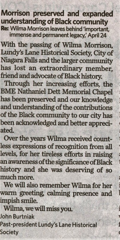 - Morrison preserved and expanded understanding of Black community, Re: Wilma Morrison leaves behind 'important, immense and permanent legacy,' April 24