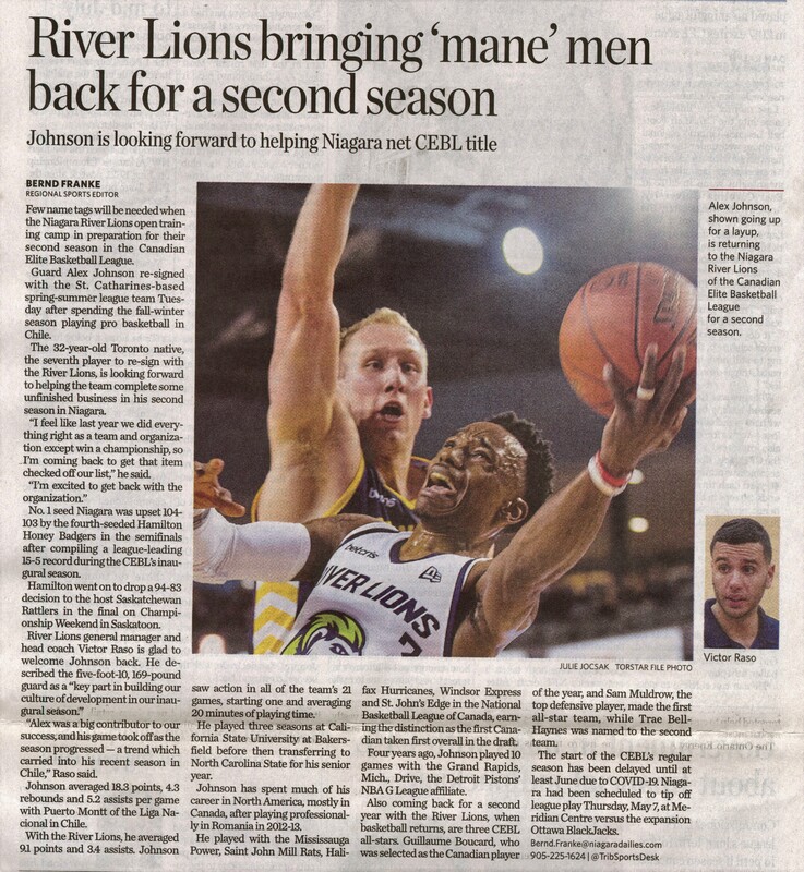 - Johnson, Alex / Raso, Victor / Niagara River Lions / Canadian Elite Basketball League / COVID-19 pandemic / season delayed
