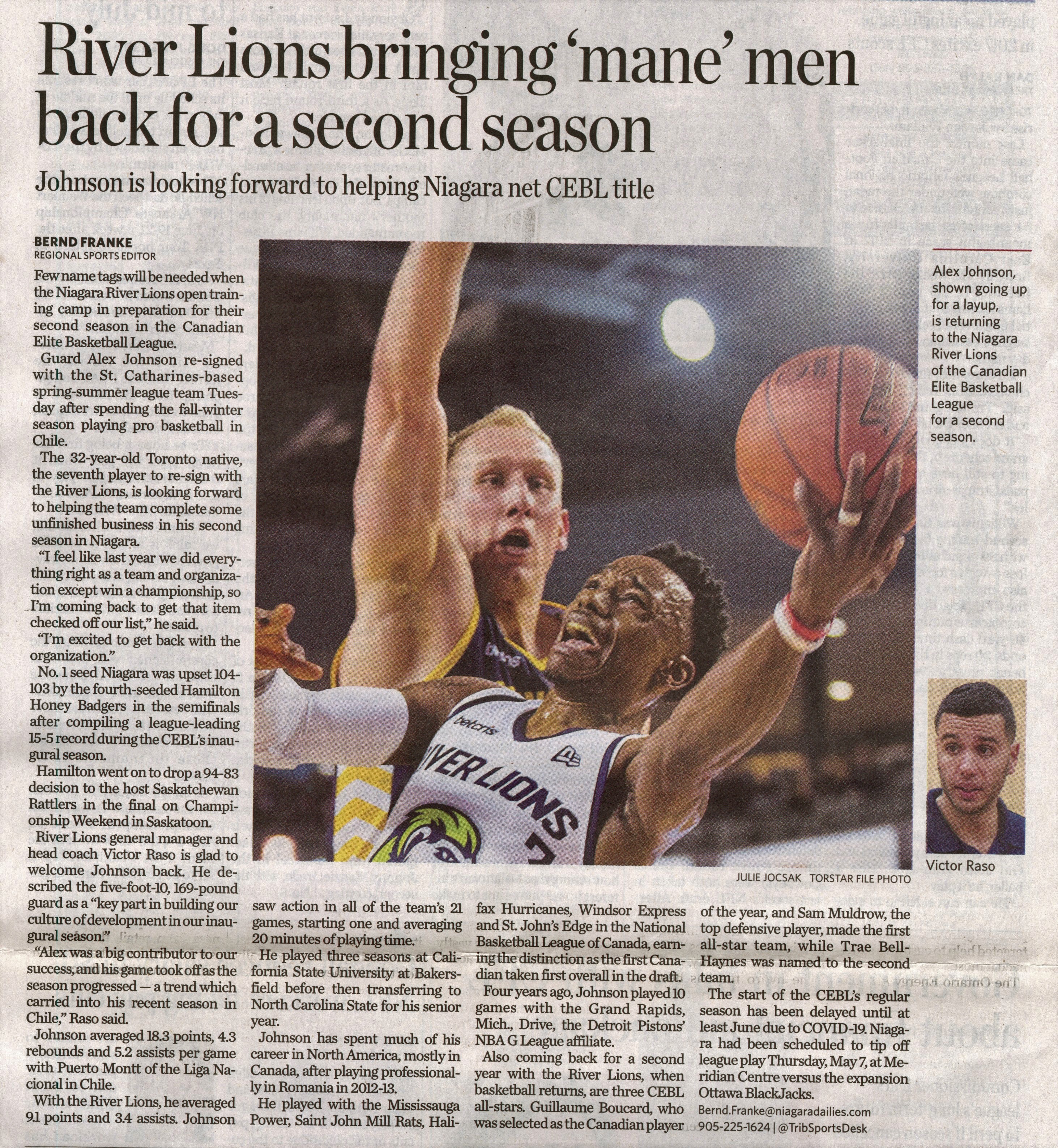 - River Lions bringing 'mane' men back for a second season : Johnson is looking forward to helping Niagara net CEBL title