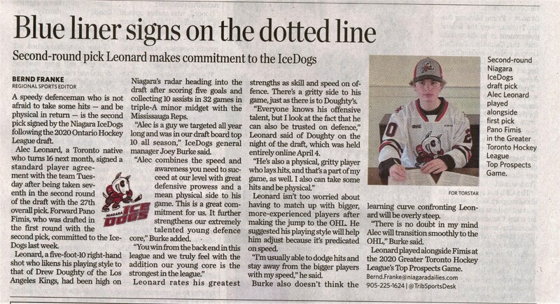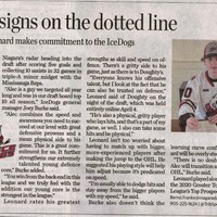 - Blue liner signs on the dotted line : Second-round pick Leonard makes commitment to the IceDogs