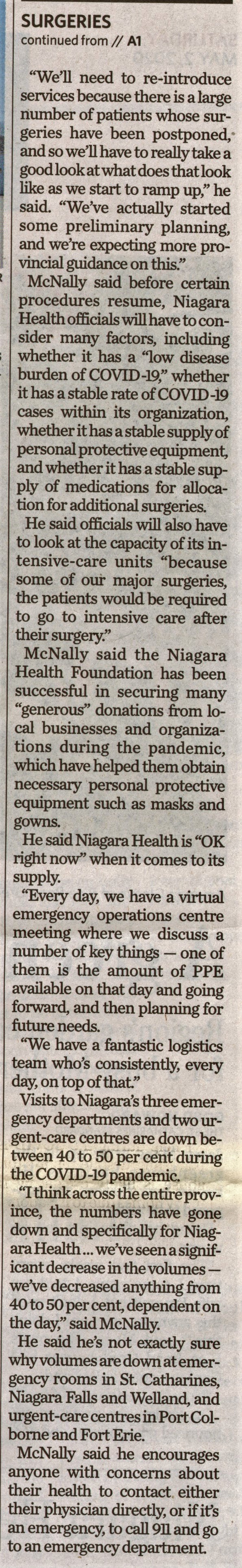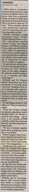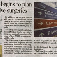 - Niagara Health / McNally, Derek / COVID-19 pandemic / plan to resume elective surgeries
