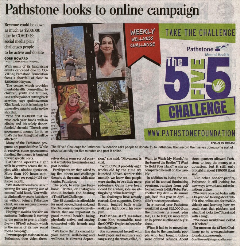 COVID-19 pandemic / Pathstone Foundation / Rossi, Kim / 5Five5 Challenge / donation to Pathstone