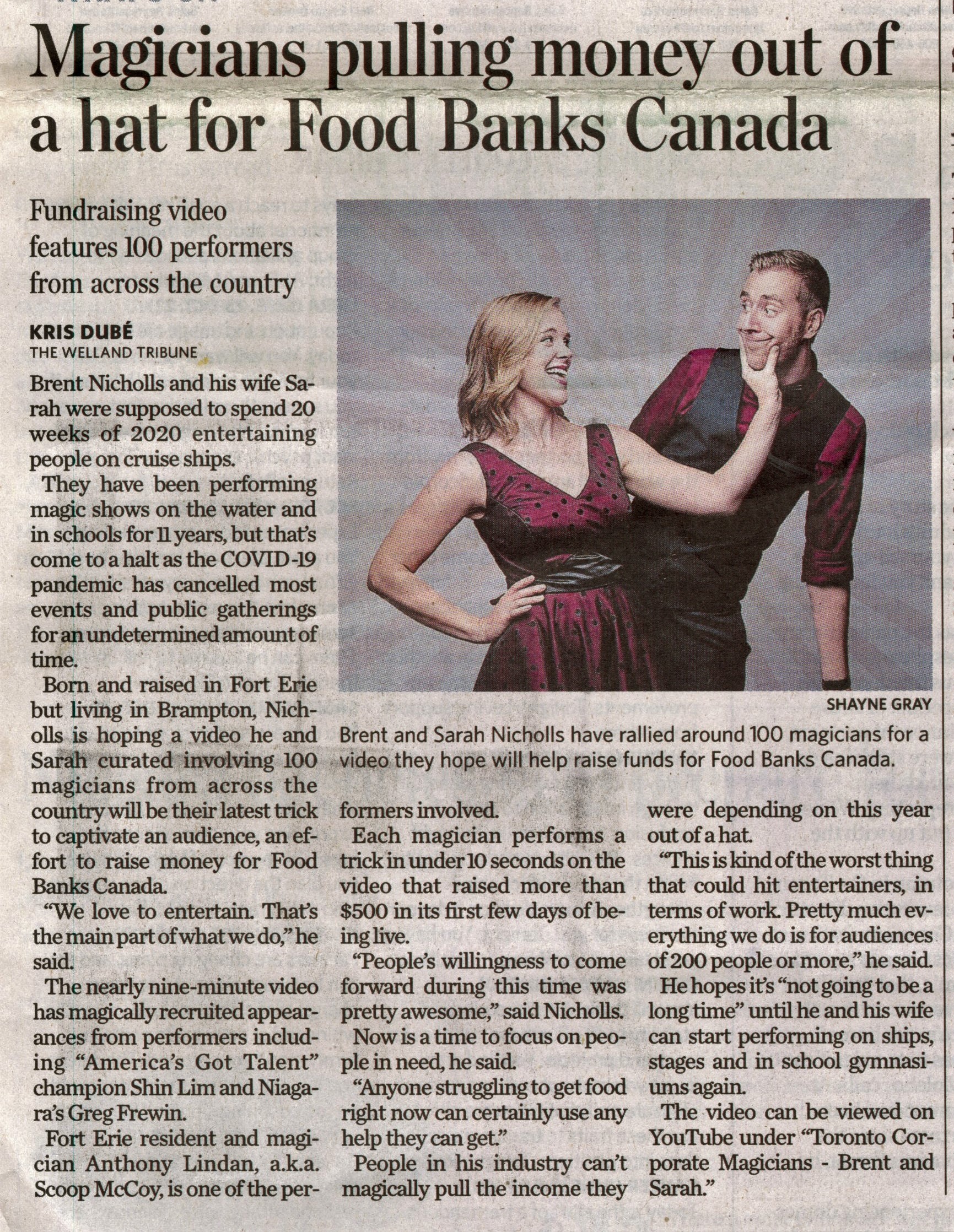 - Magicians pulling money out of a hat for Food Banks Canada : Fundraising video features 100 performers from across the country