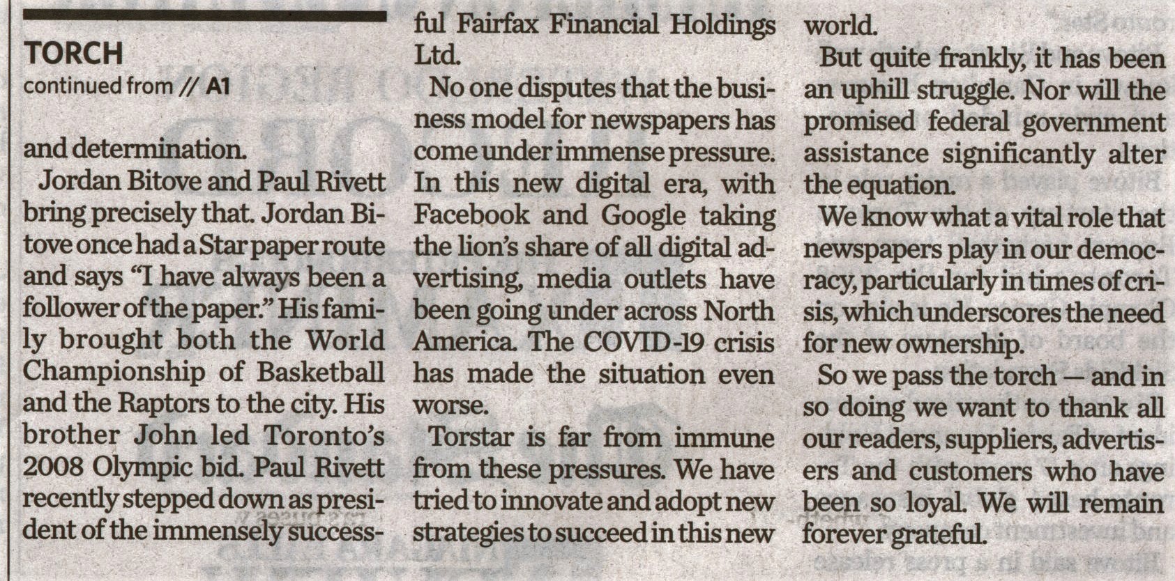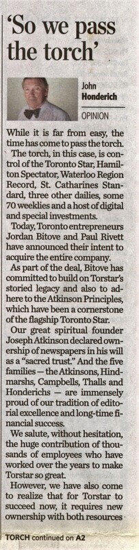 - Torstar / sold / Bitove, Jordan / Rivett, Paul / Niagata Falls Review