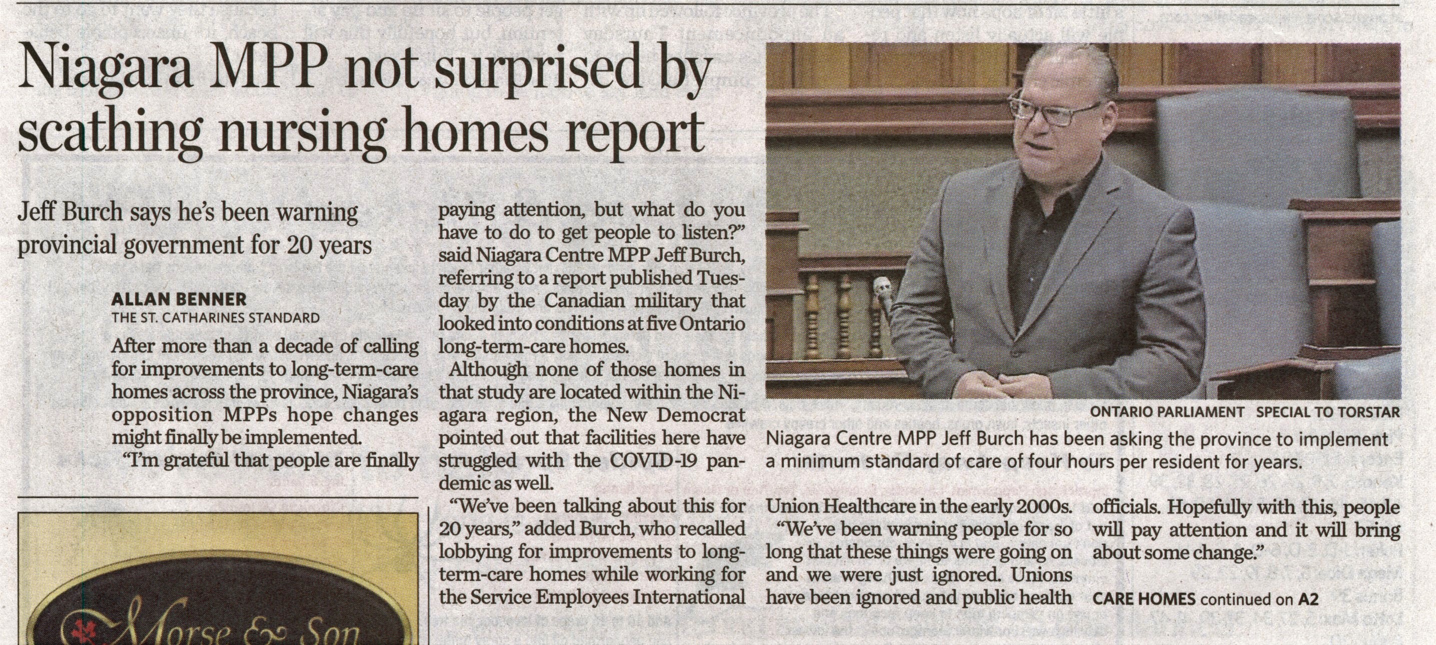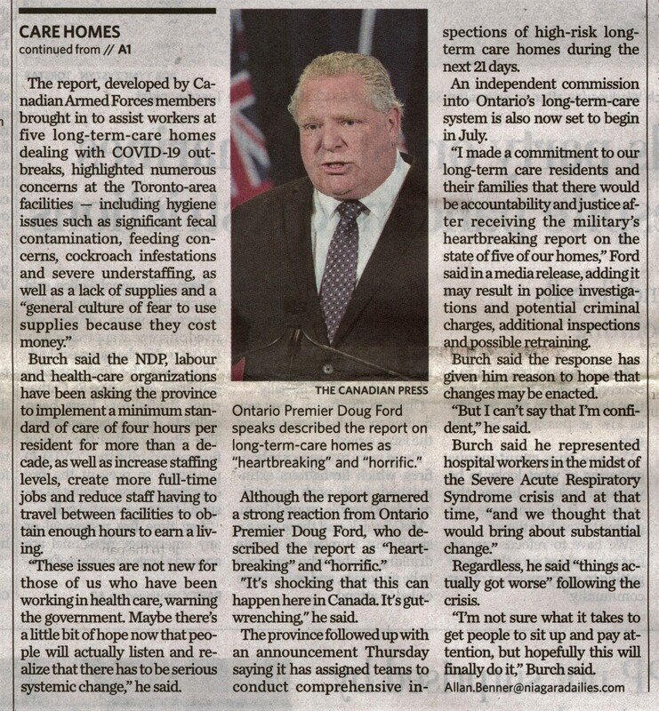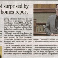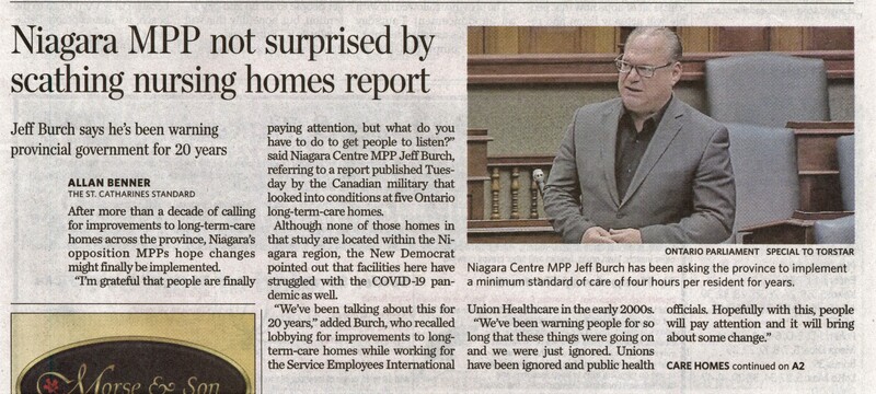 - Niagara MPP not surprised by seathing nursing homes report : Jeff Burch says he's been warning provincial government for 20 years