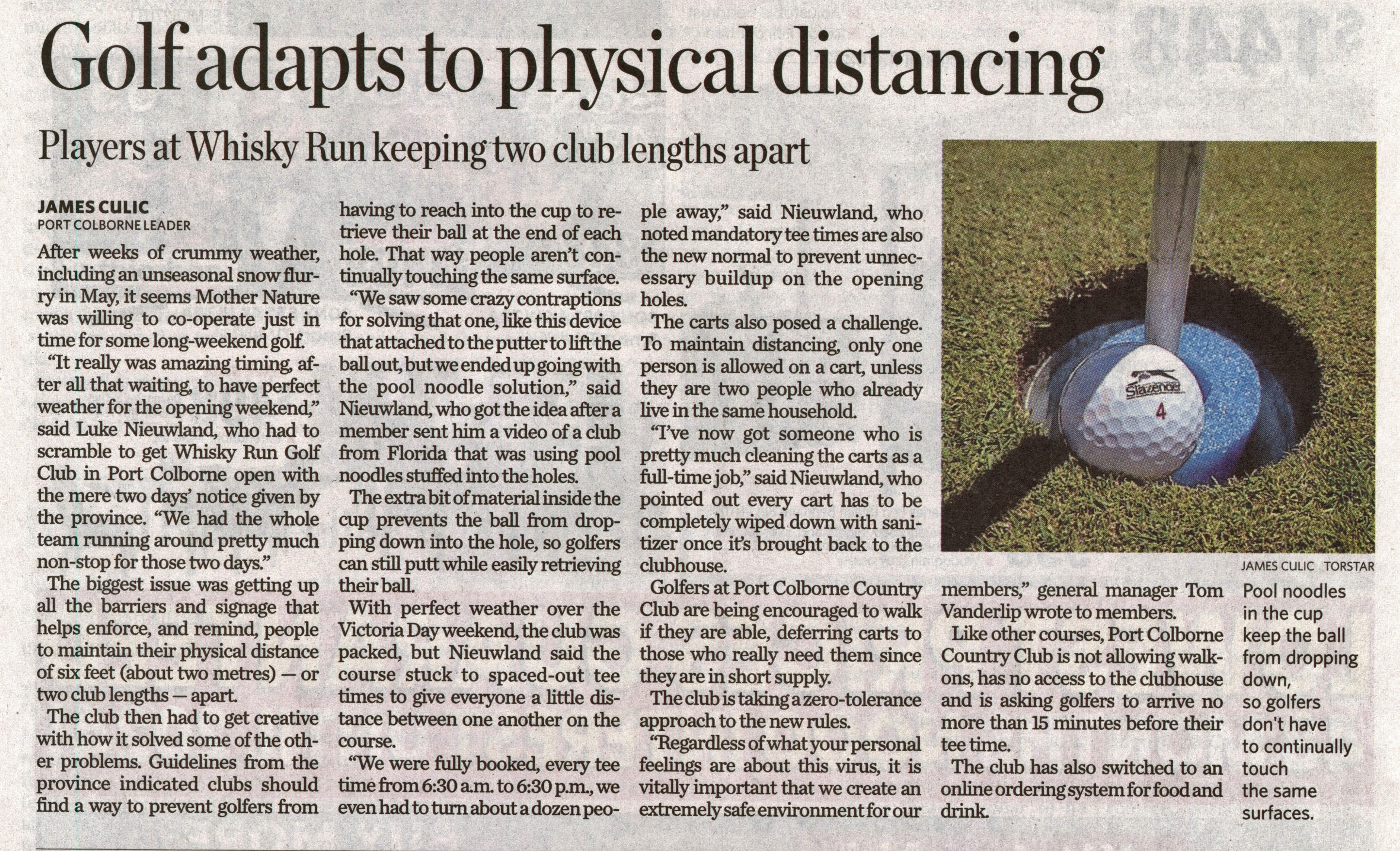 - Golf adapts to physical distancing : Players at Whiskey Run keeping two club lengths apart