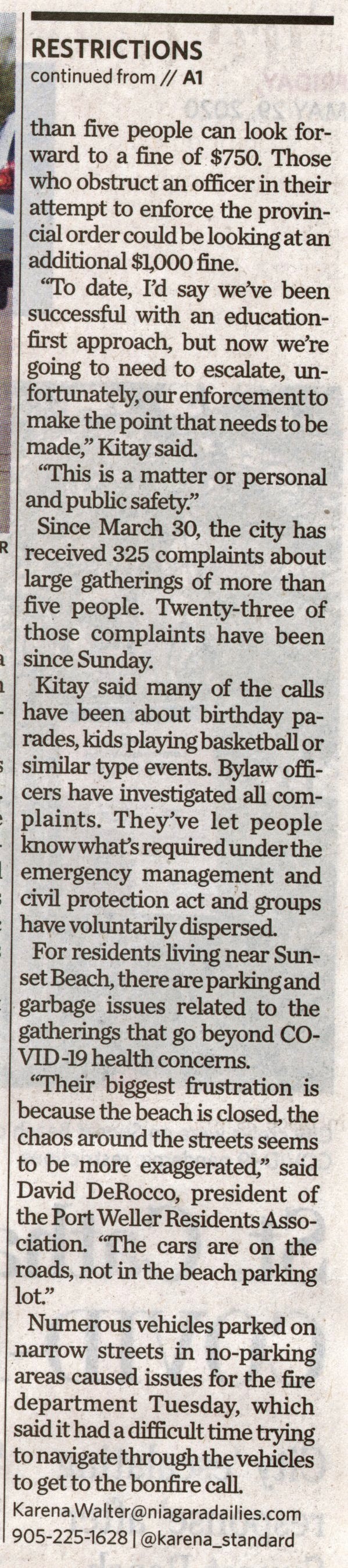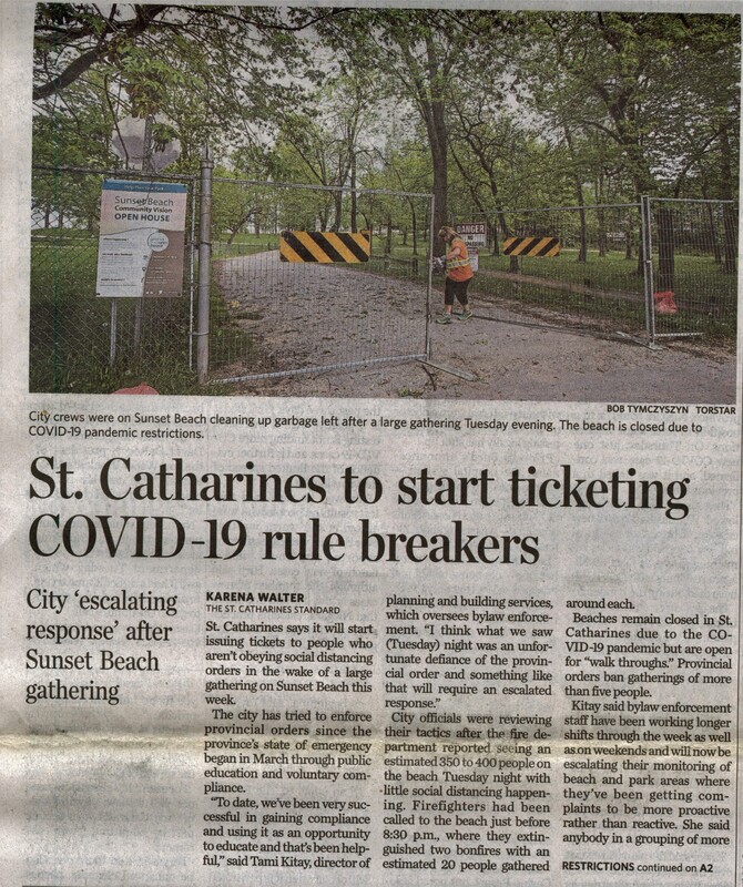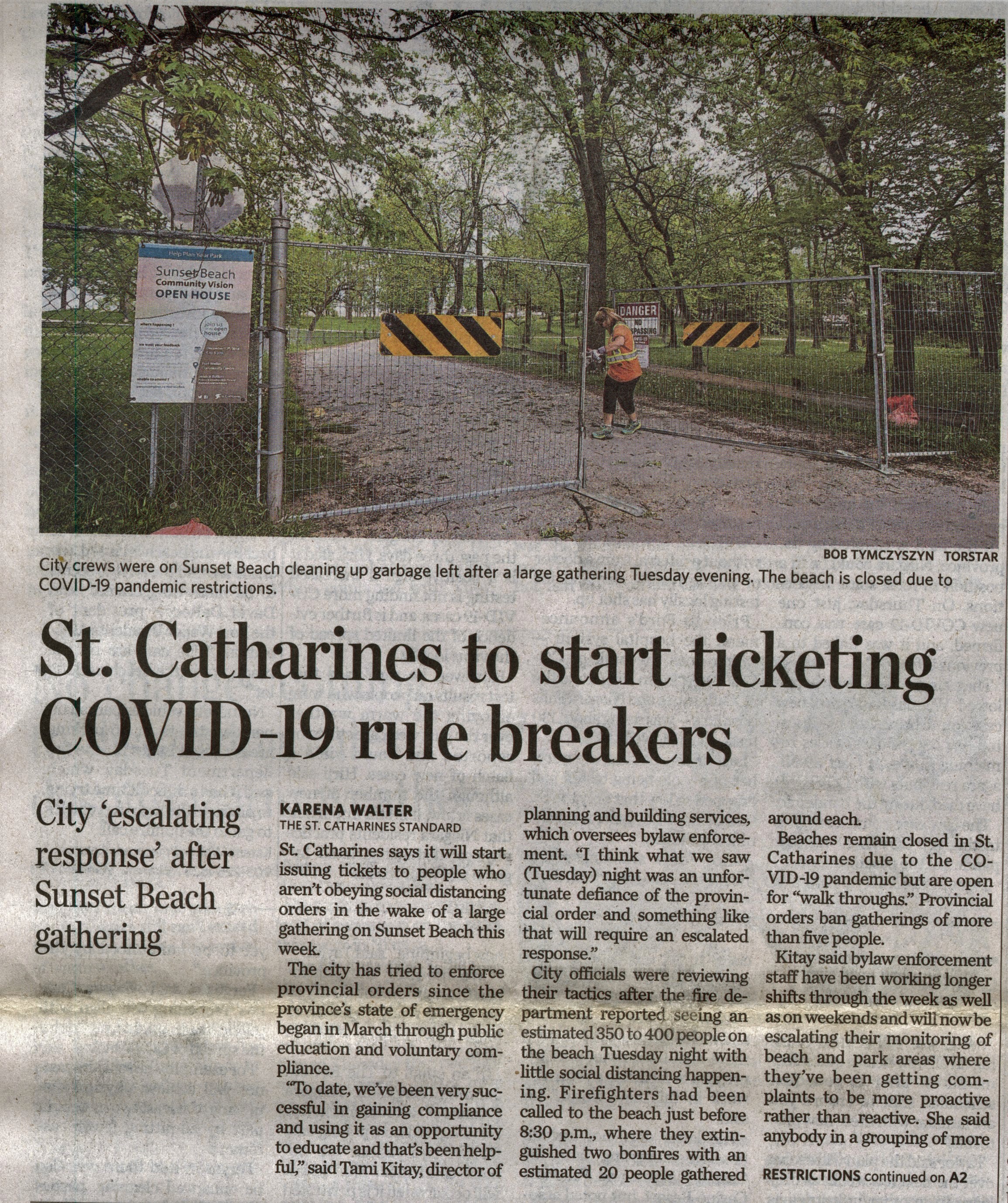 - St. Catharines to start ticketing COVID-19 rule breakers : City 'escalating response' after Sunset Beach gathering