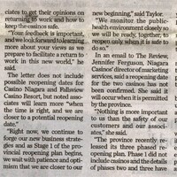 Niagara casinos plan for a 'new world : No date set for Fallsview Casino Resort to allow customers back once safety measures are properly in place