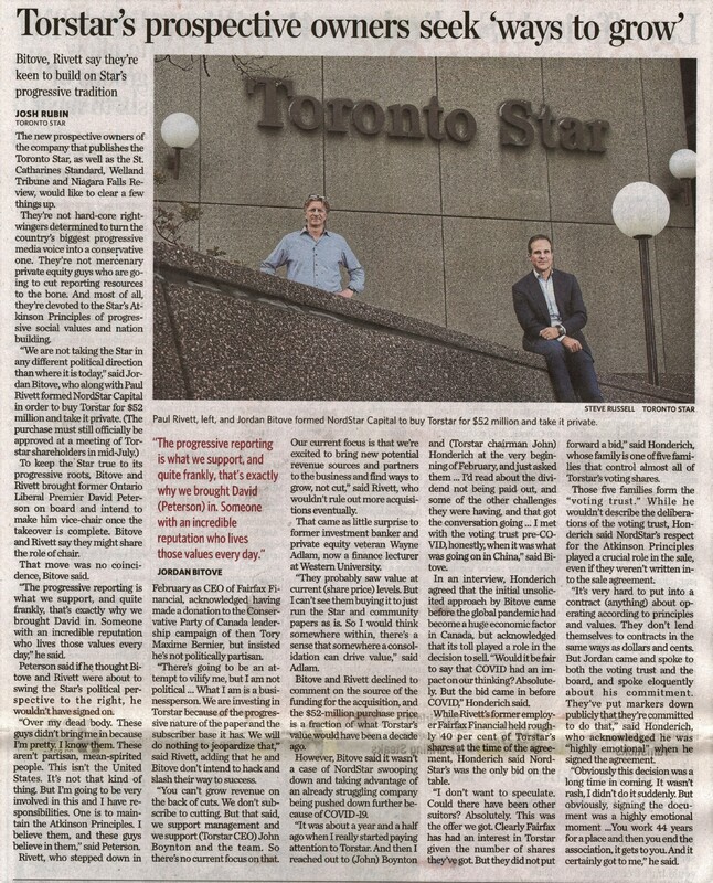 - Rivett, Paul / Bitove, Jordan / Torstar / Niagara Falls Review / NordStar Capital