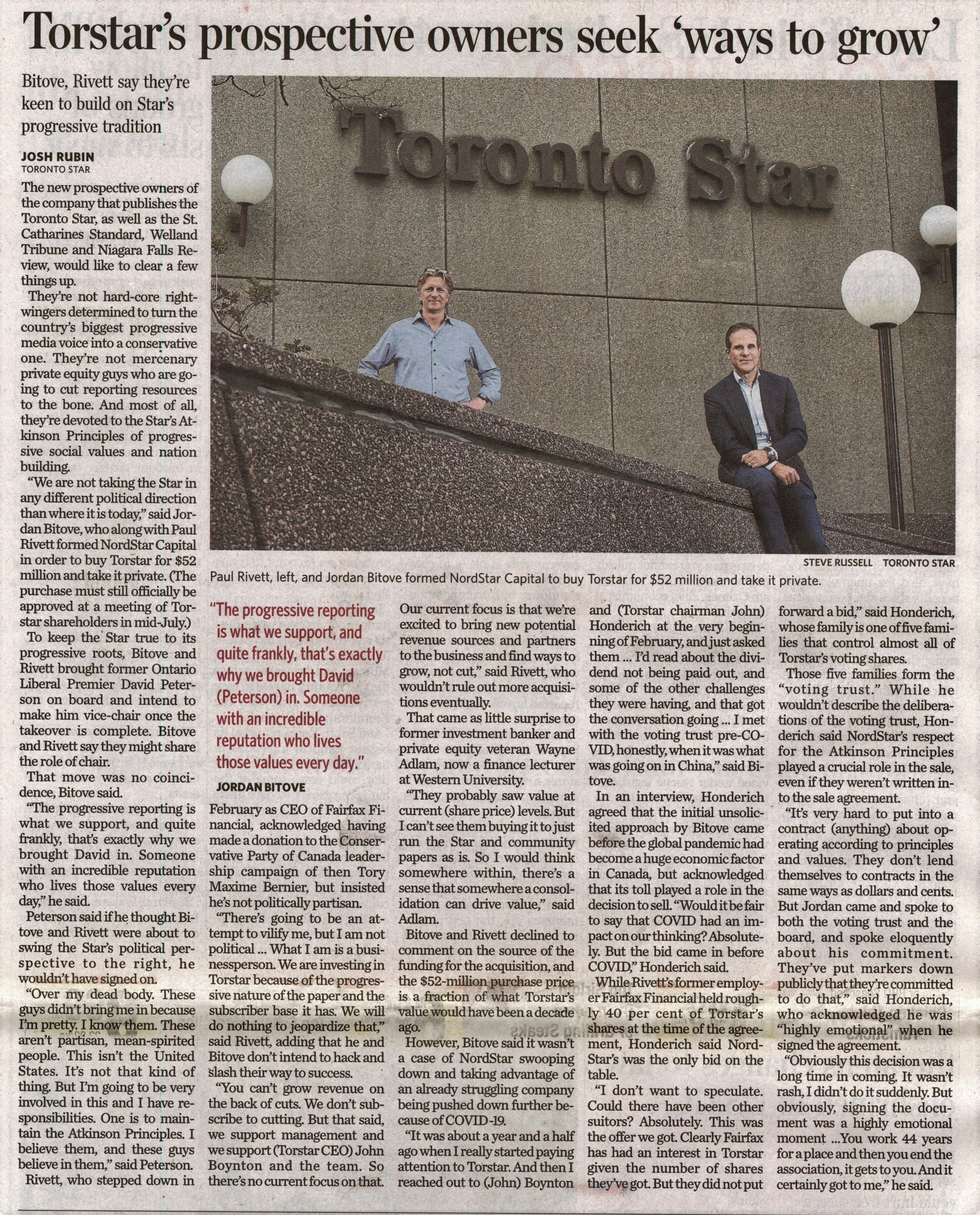 - Torstar's prospective owners seek 'ways to grow' : Bitove, Rivett say they're keen to build on Star's progressive tradition