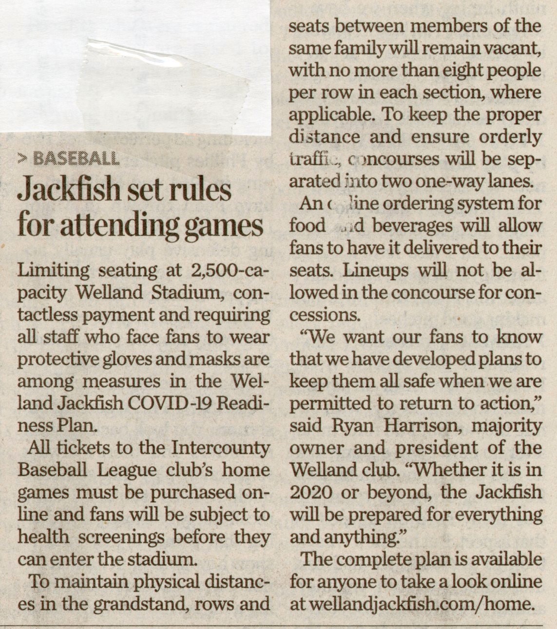 - Welland Jackfish / COVID-19 pandemic / Intercounty Baseball League / Harrison, Ryan