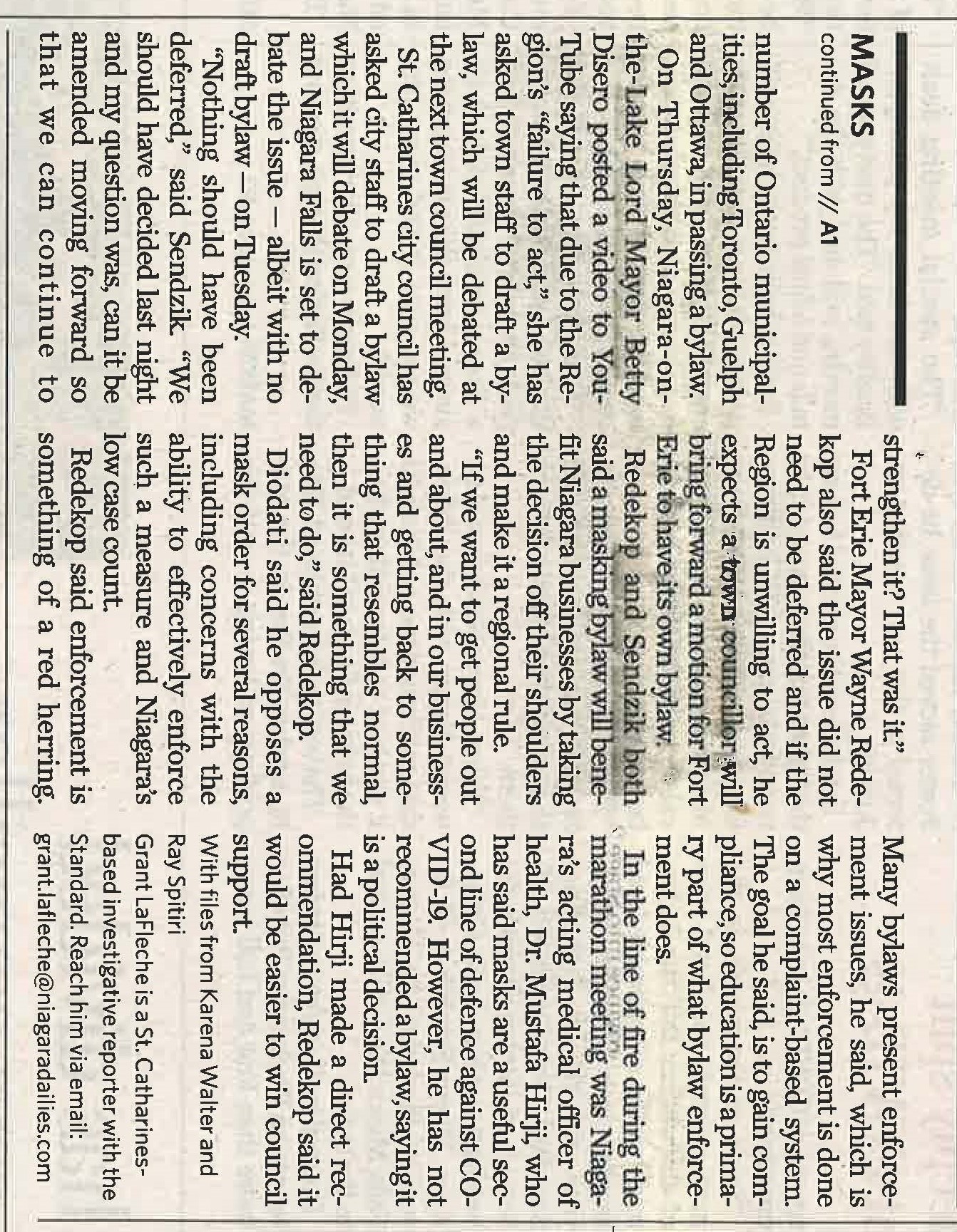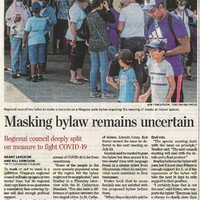 Masking bylaw remains uncertain : regional council deeply split on measure to fight COVID-19