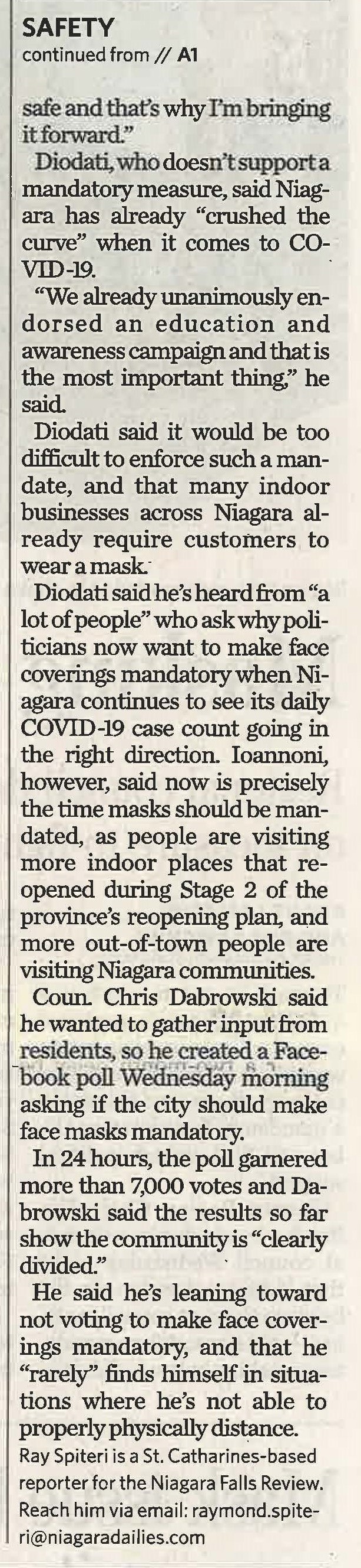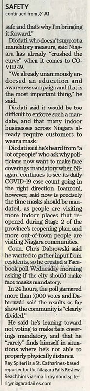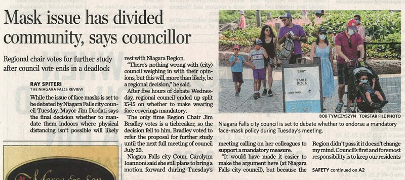 - Mask issue has divided community, says councillor : regional chair votes for further study after council vote ends in a deadlock