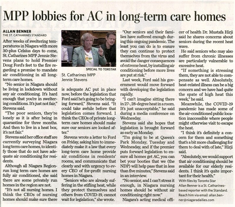 - MPP lobbies for AC in long-term care homes