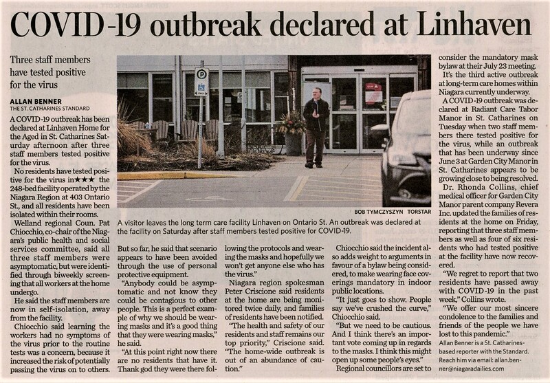 - COVID-19 outbreak declared at Linhaven : three staff members have tested positive for the virus