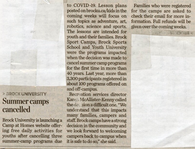- Brock University / Camp at Homes / COVID-19 pandemic / on-line lessons