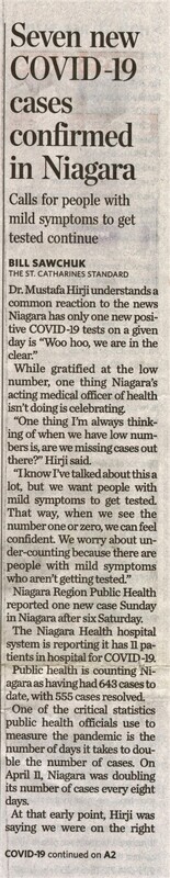 - Hirji, Mustafa Dr. / COVID-19 pandemic / Niagara Region Public Health