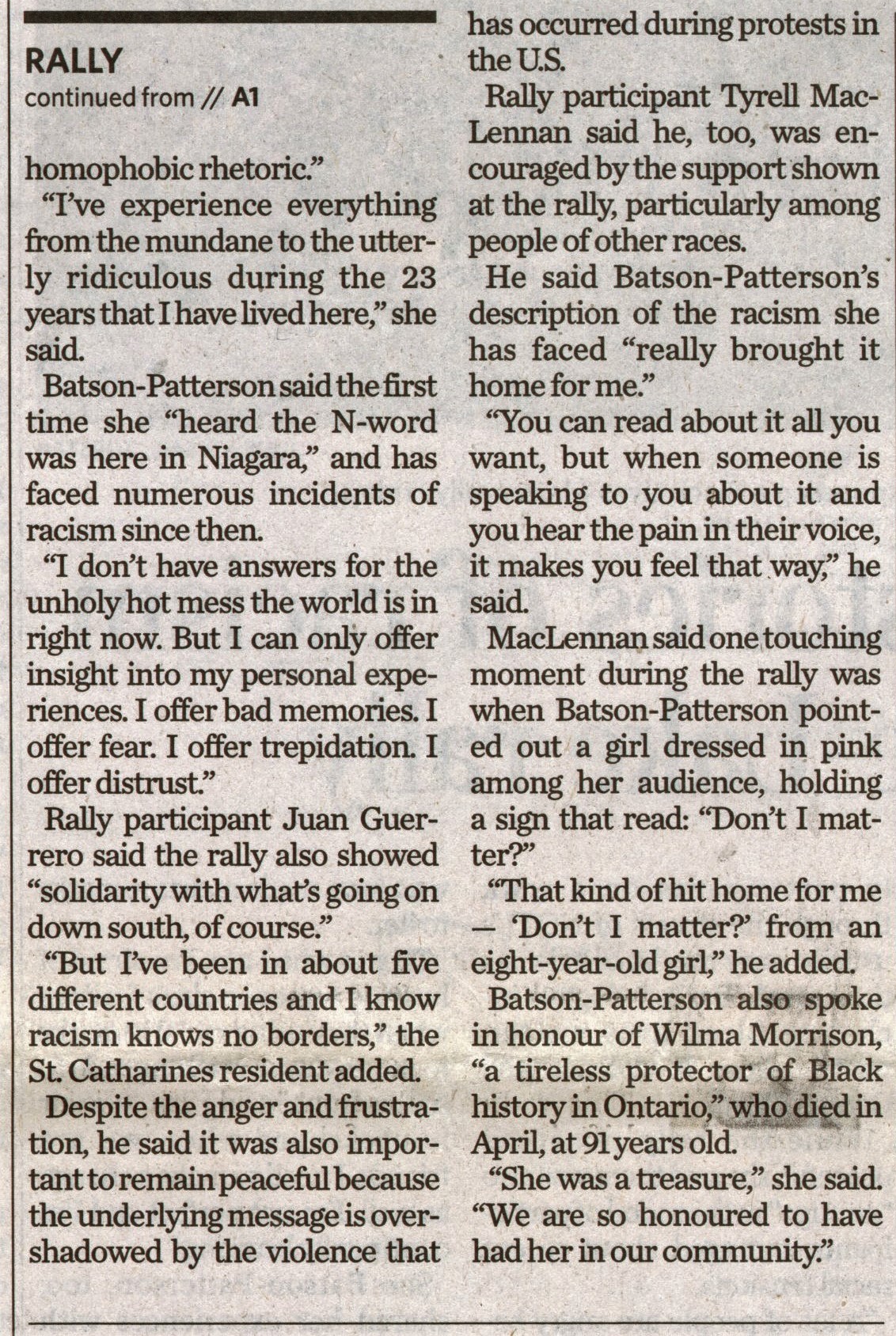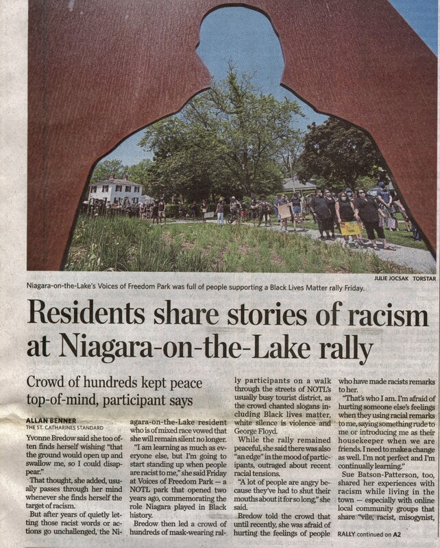 - Residents share stories of racism at Niagara-on-the-Lake rally : Crowd of hundreds kept peace top-of-mind, participant says